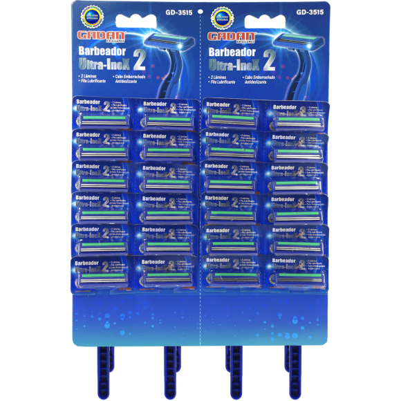 BARBEADOR ULTRA INOX 2 - 2 LÂMINAS CABO EMBORRACHADO CARTELA C/ 24 PCS - GADAN